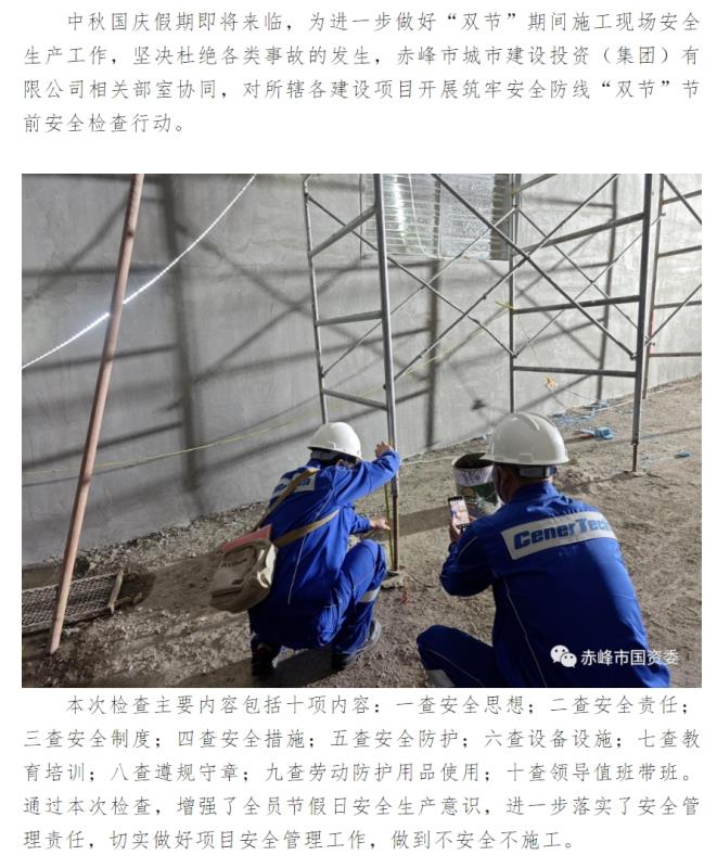赤峰市城市建設(shè)投資(集團)有限公司開展筑牢全防線“雙節(jié)”節(jié)前安全檢查行動
