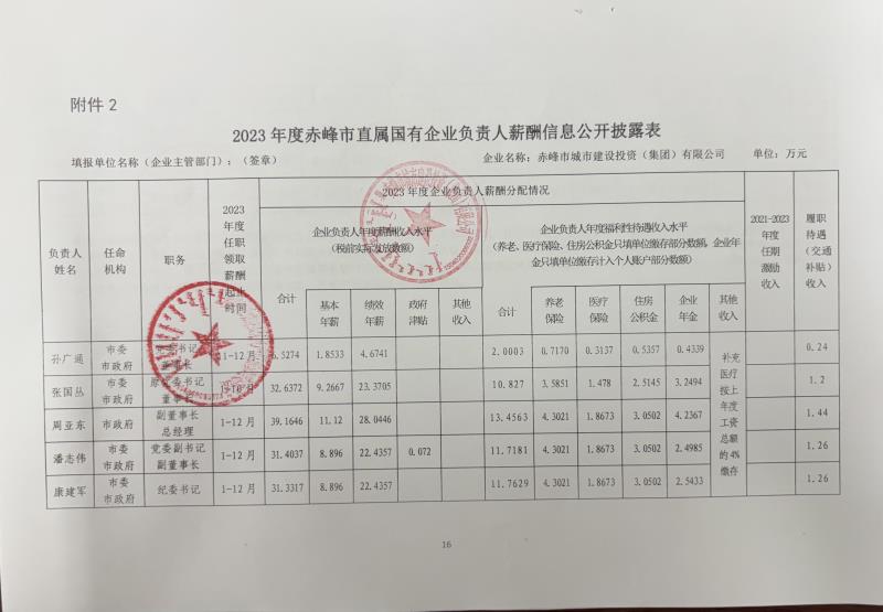 赤峰市城建集團(tuán)2023年度工資總額清…